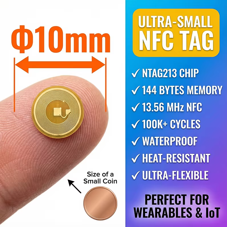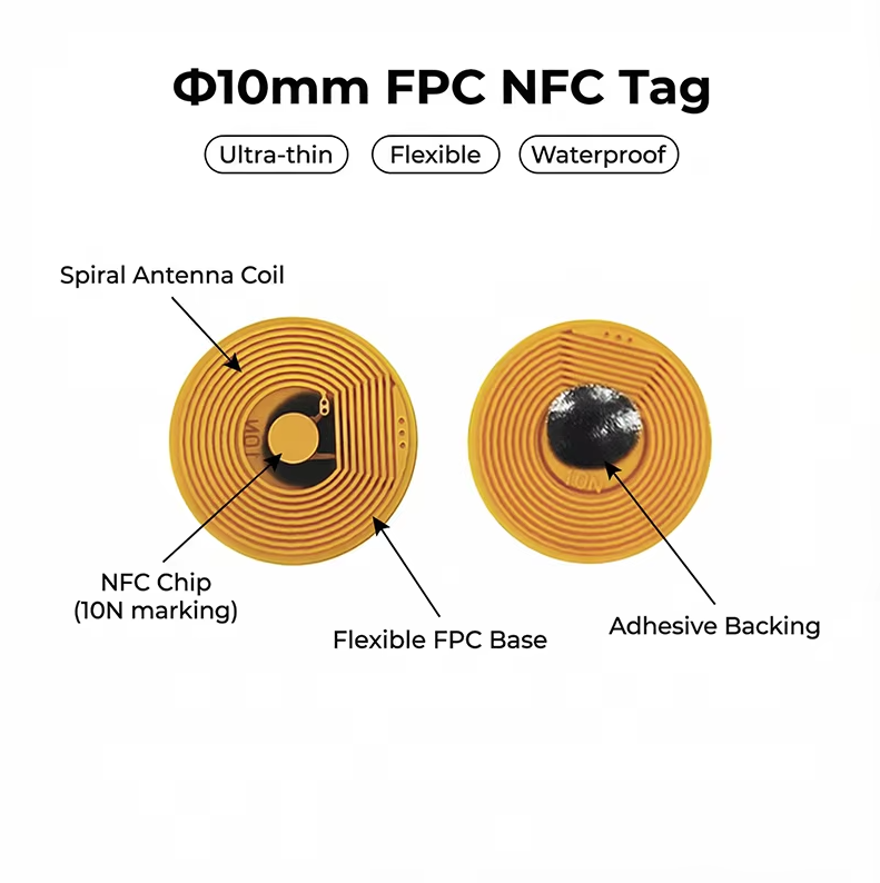 10mm Circle NFC213 13.56Mhz Programmable RFID Stickers Round Waterproof Flexible FPC NFC